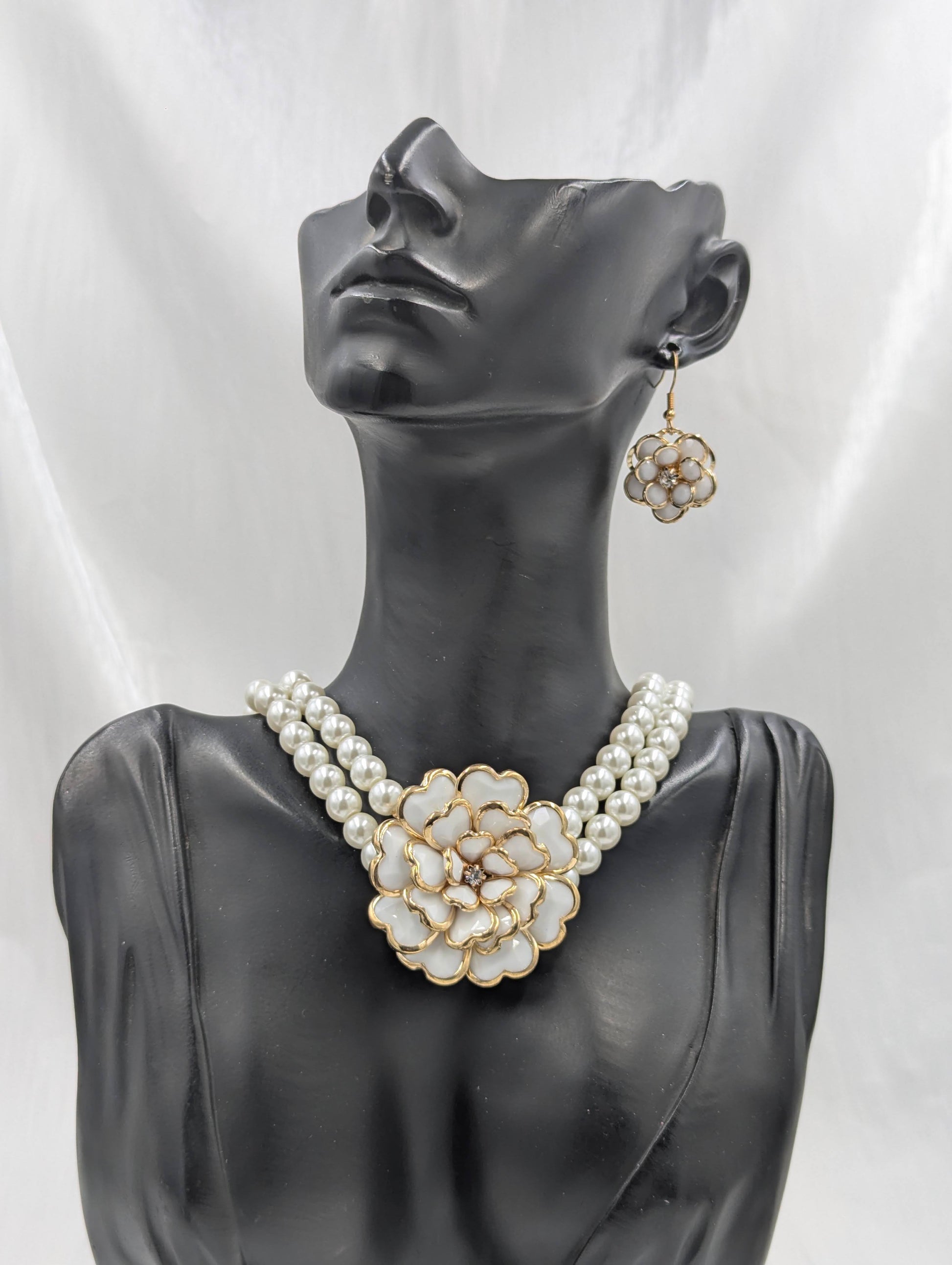 Rosette Pearl Necklace Set